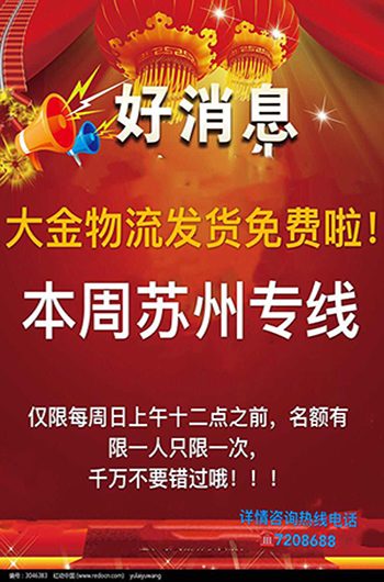 (物流城)大金物流发货免费啦! 本周苏州专线!